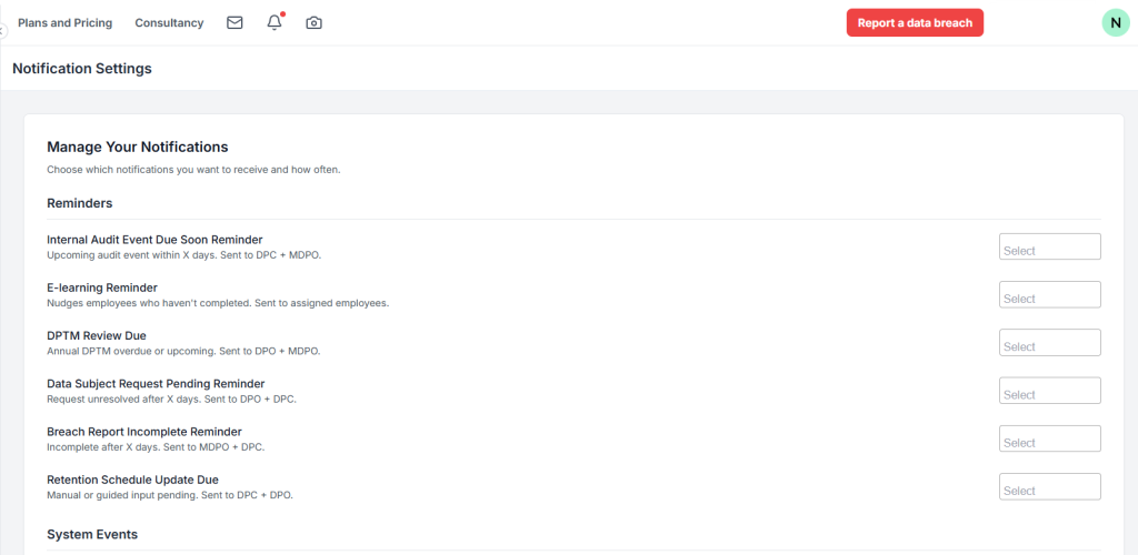 RobotDPO™ is a compliance management platform. Organisations must still appoint an internal or external DPO while using the platform to structure governance workflows.