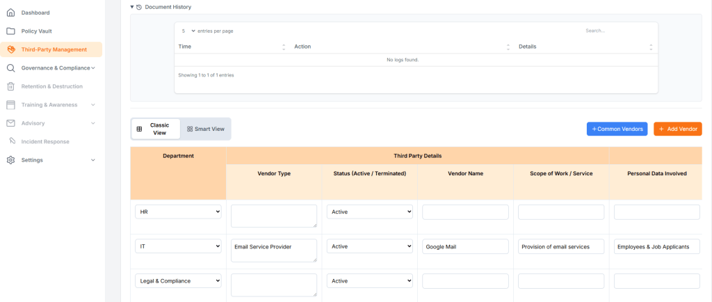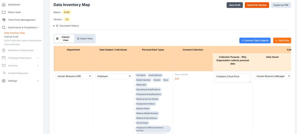 Most organisations manage PDPA compliance across disconnected Word documents, Excel trackers, and scattered emails. This fragmentation leads to: